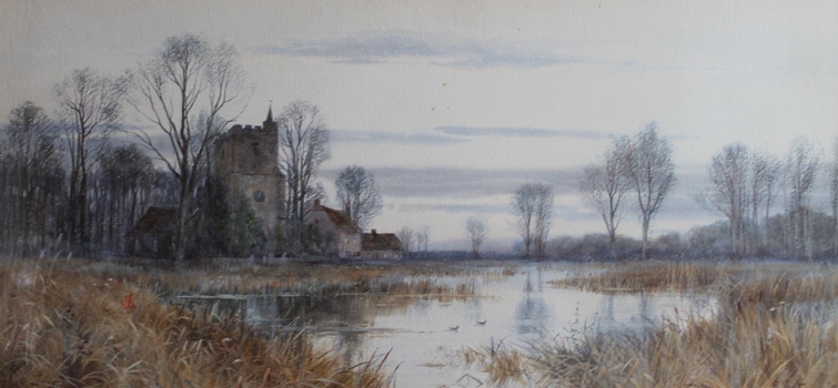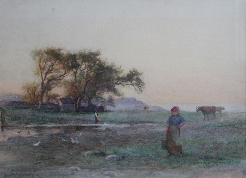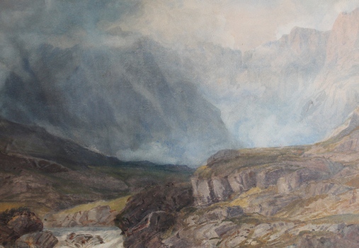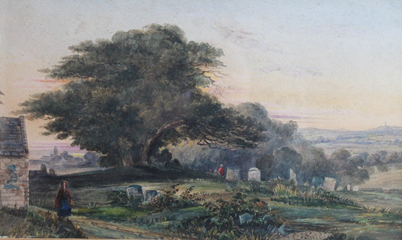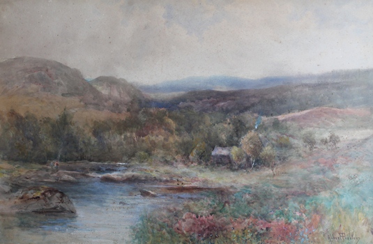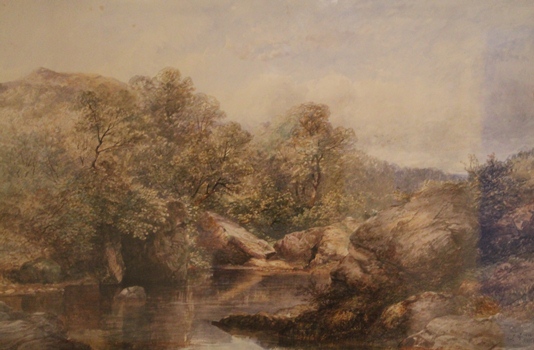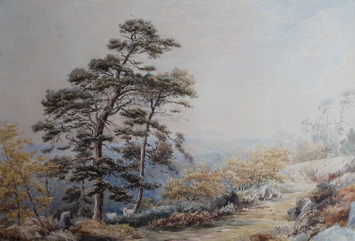 WALTERS C.S. Sunlit upland landscape, 1854, watercolour heightened with white