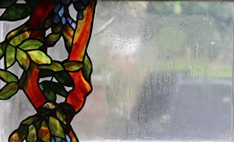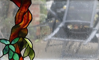 Wisteria window 1994, Size 170 x 43 cms. Designer and artist – Michael Brown Artist – Michael Brown